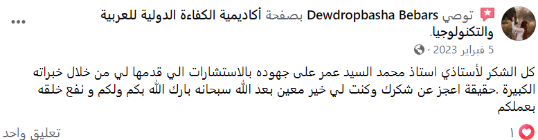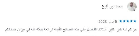 أودّ أن أتوجه بعظيم الشكر والامتنان للأستاذ محمد على دورته الأكثر من رائعة التي تنم على سعة علمه وتبحره في التعليم والتكنولوجيا، نفع الله بك أستاذنا الكريم وجزاك عنا خير الجزاء في الدنيا والآخرة
