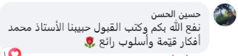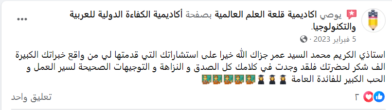 جزى الله إدارة أكاديمية الإمام مالك عنا كل خير .. لاتاحتها لنا فرصة التعرف عليكم أستاذ محمد وأن ننهل من علمكم النافع وأن نستفيد من لقاءات التدريب بفضل جهدكم