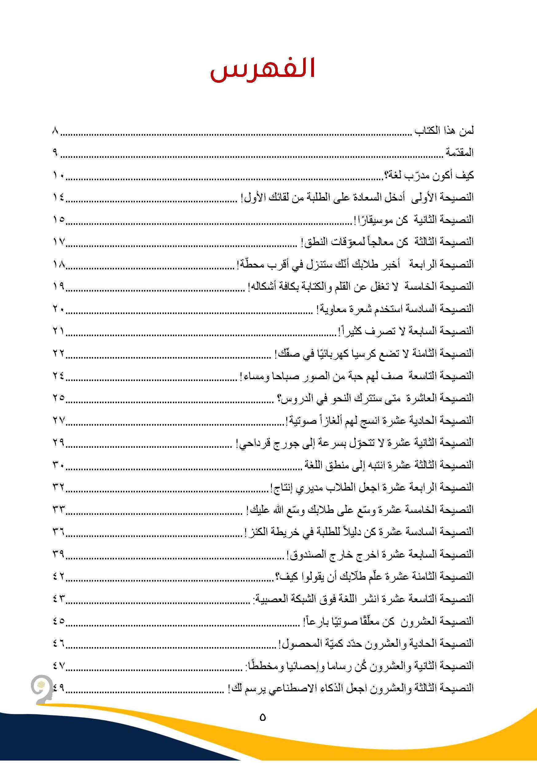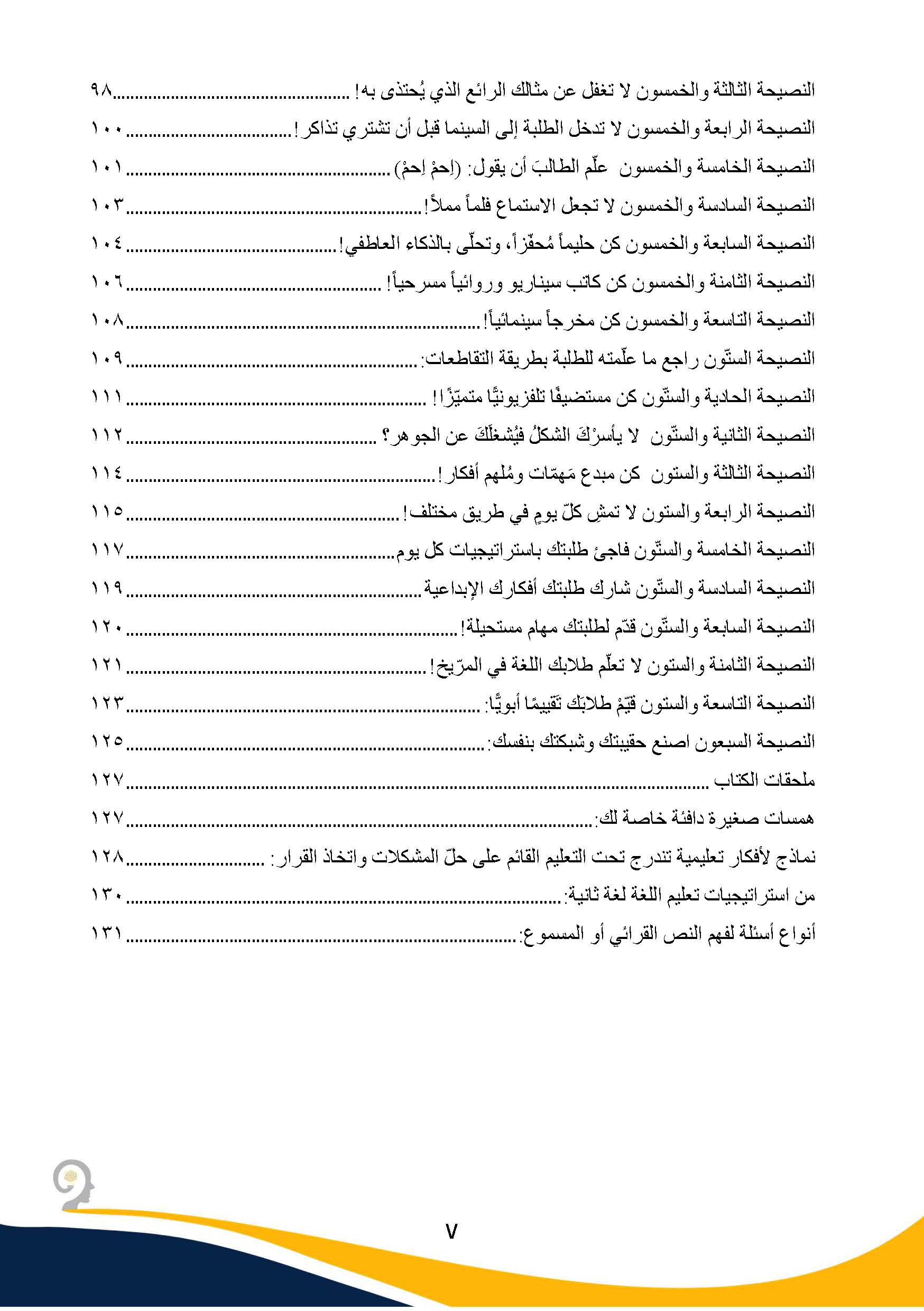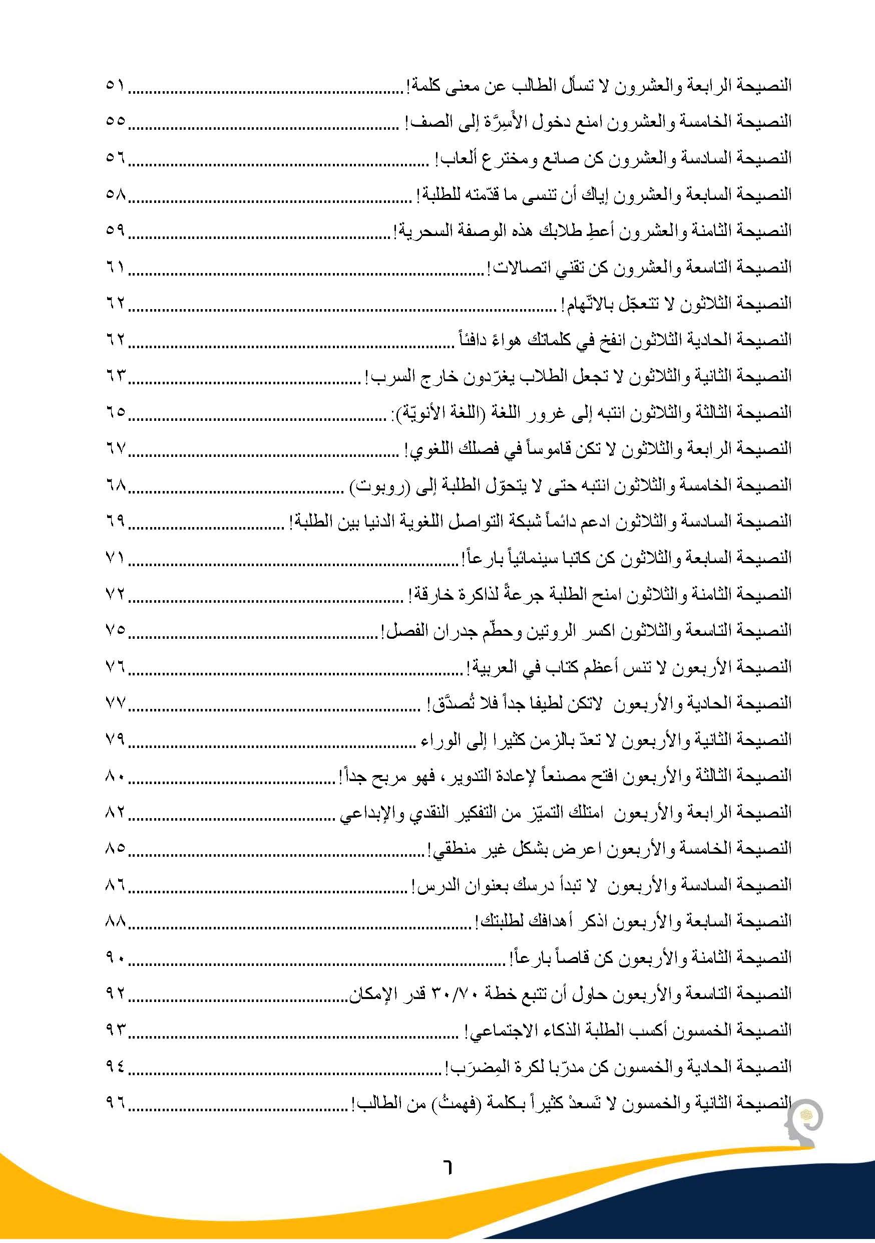 سبعون نصيحة ذهبية تحتضن أفكاراً عن استراتيجيات التعليم الحديثة للغات، ومهارات التفكير النقدي، والاتجاه النفسي، والاجتماعي، والعاطفي، وأنماط التعلّم عند الطلبة، وطرفاً من التعليم القائم على المهام وغيرها الكثير💡